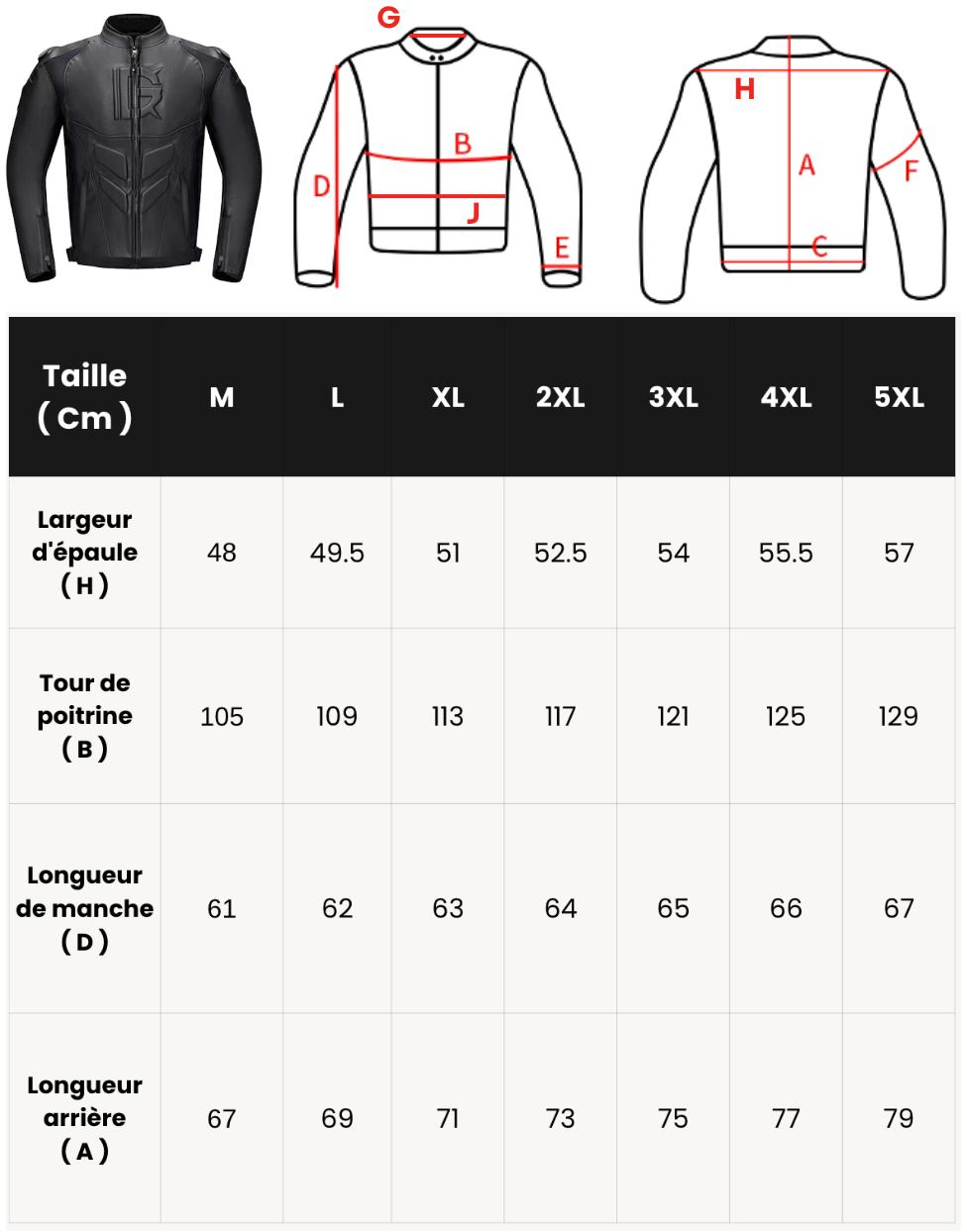 • Tailles : M, L, XL, 2XL, 3XL, 4XL, 5XL