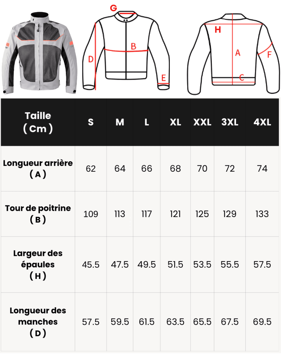 • Caractéristiques : Confortable, Respirant, Réfléchissant, Coupe-vent, 5 protections amovibles, Tissu Oxford, Anti-choc, Résistant à l'usure