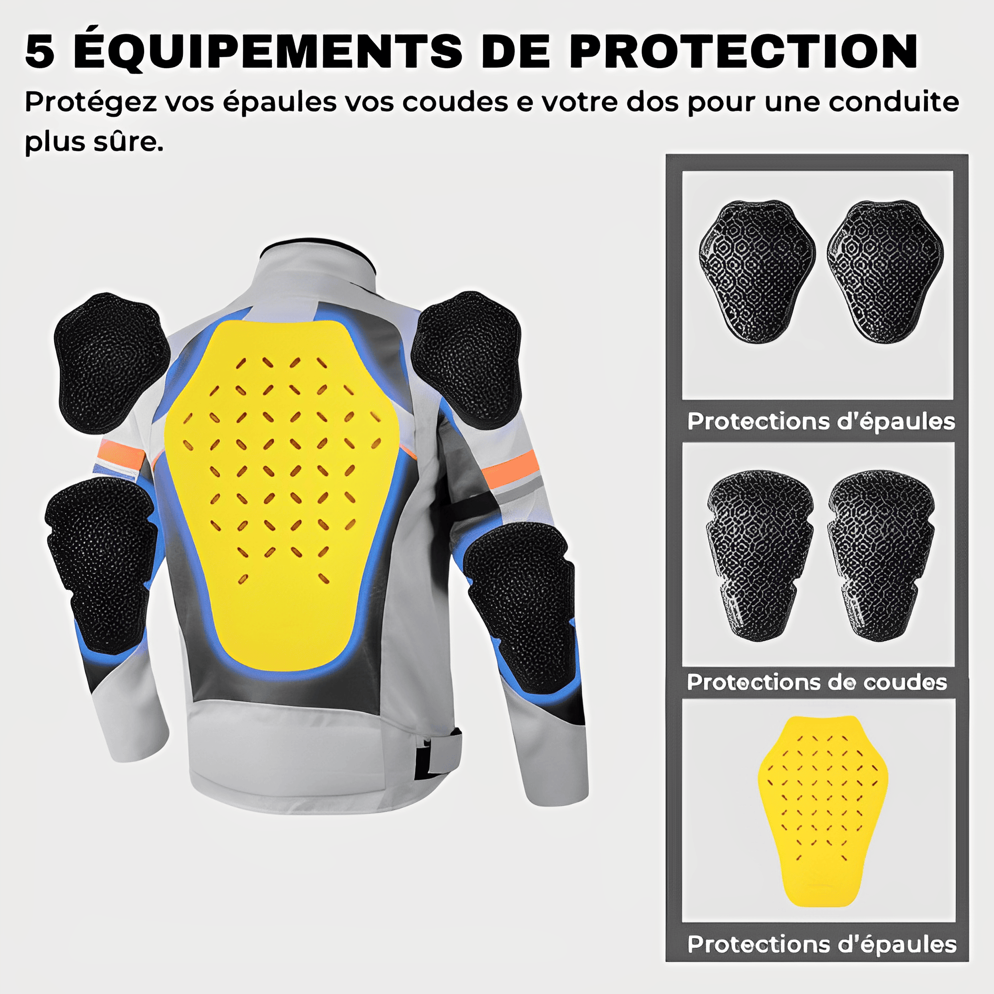• Le colis contient : 1 veste de moto, 5 protections amovibles