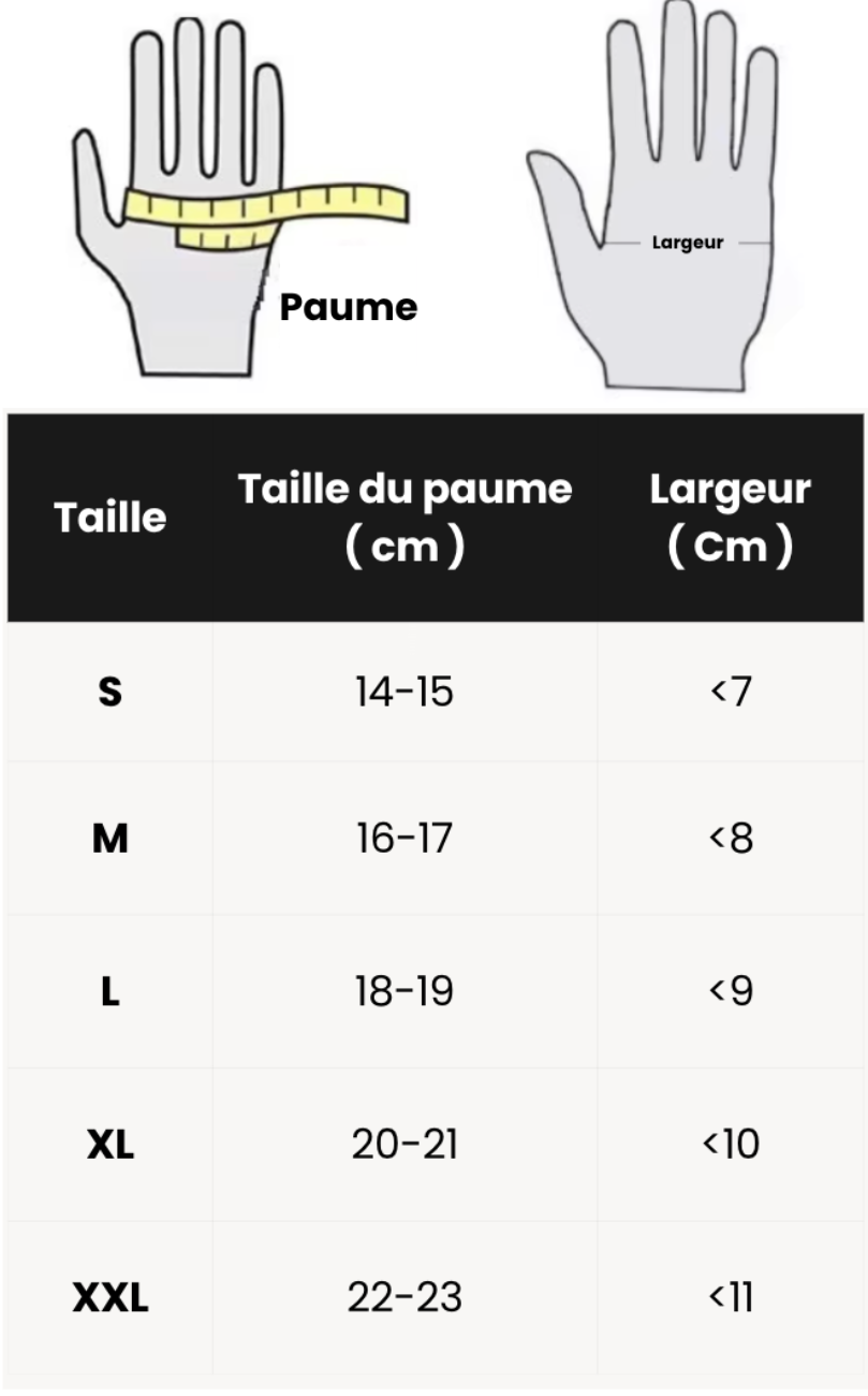 - Conseil : Si vos mesures se situent entre deux tailles, choisissez toujours la taille supérieure.