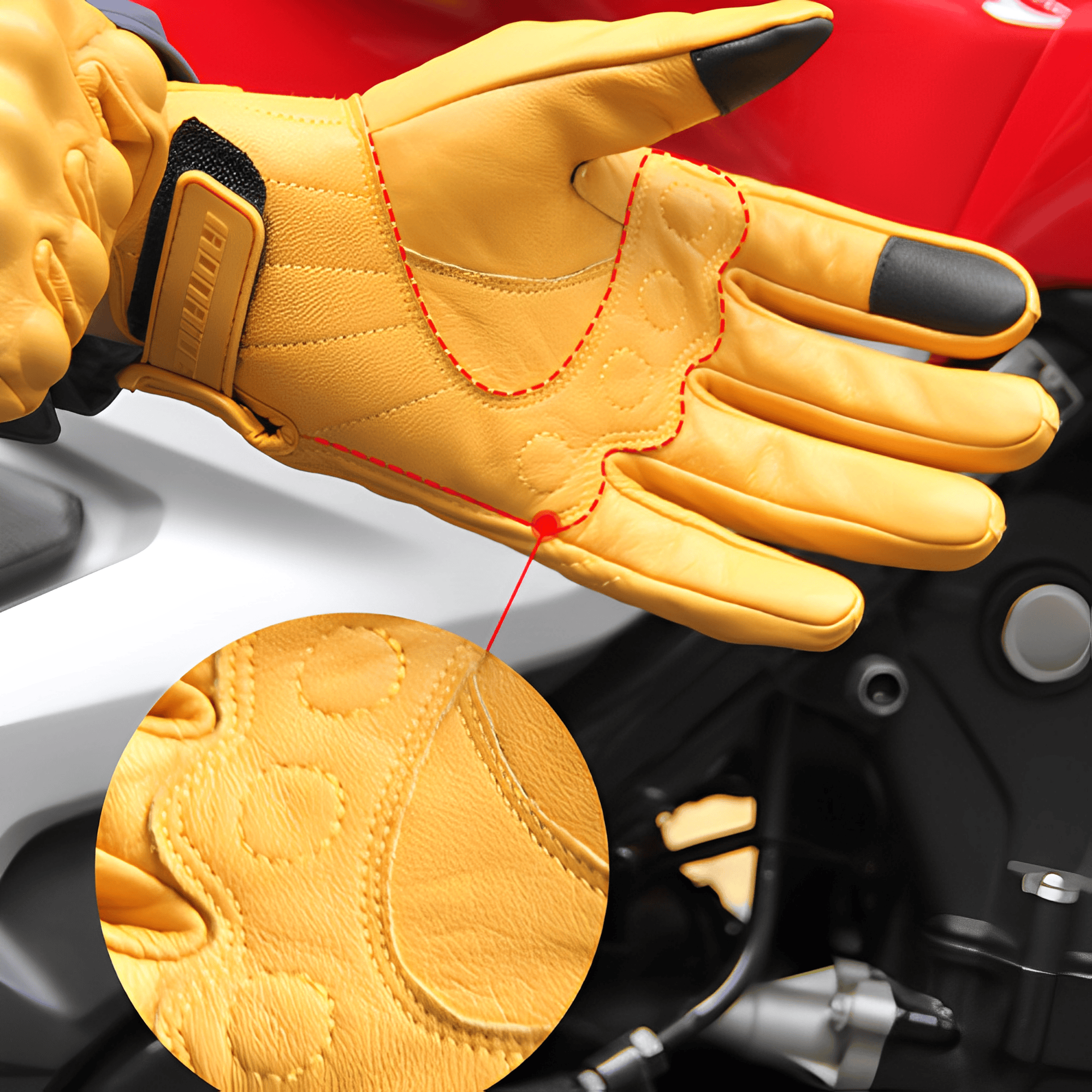 Le cuir de mouton apporte une sensation de luxe tout en offrant une protection renforcée des articulations des doigts, pour une expérience de conduite haut de gamme.