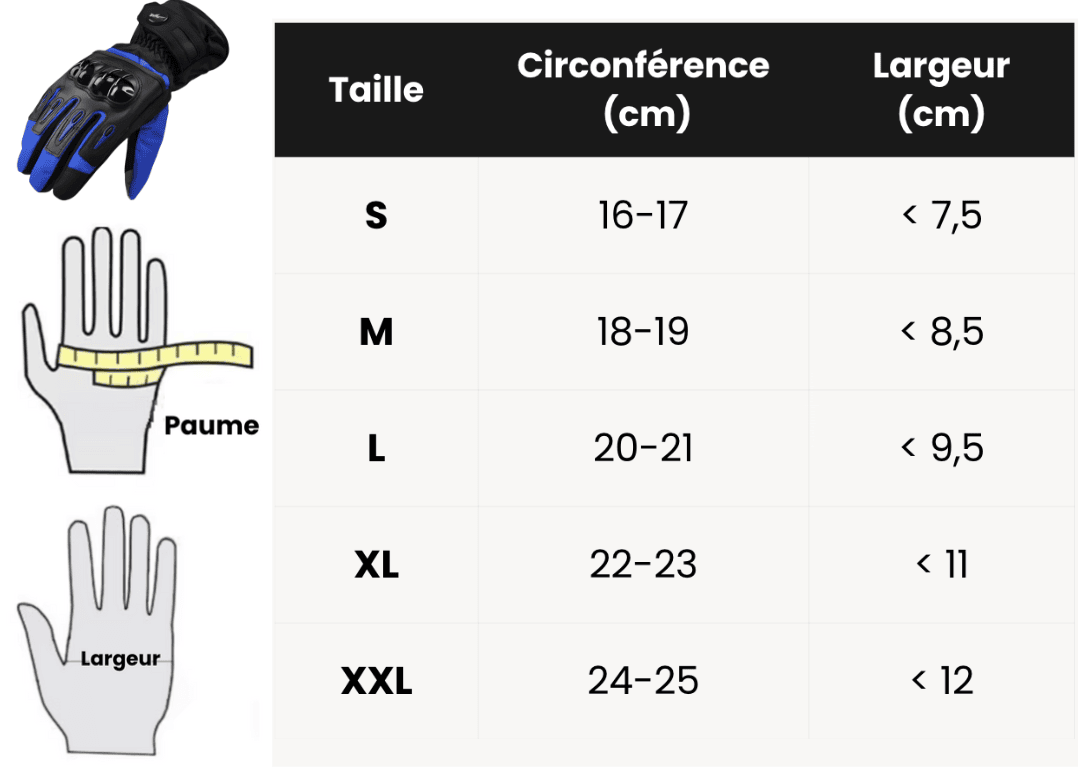 - Conseil : Si vos mesures se situent entre deux tailles, choisissez toujours la taille supérieure.