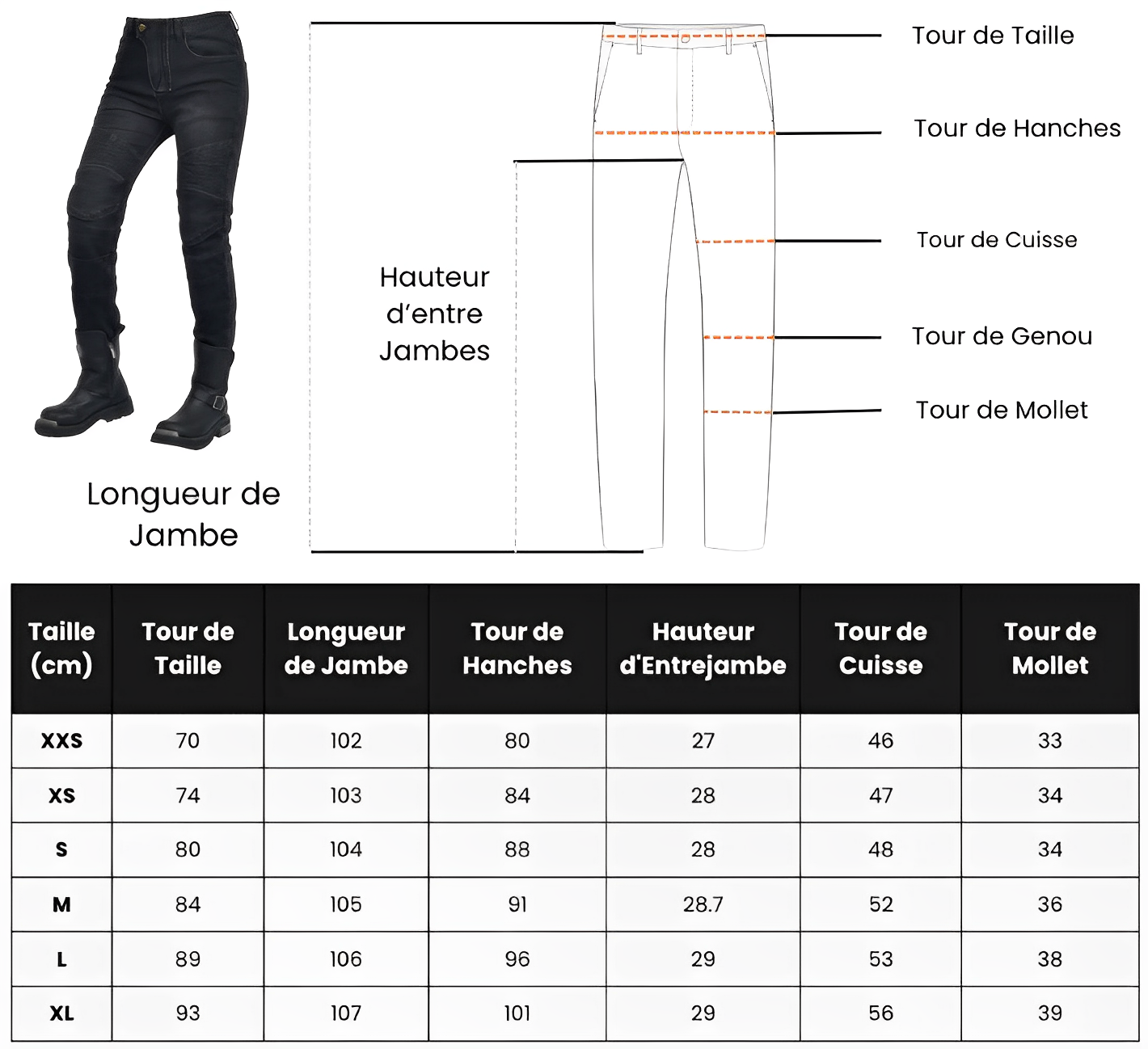 Le design plié au niveau des genoux et de la taille permet une flexibilité maximale, assurant une aisance de mouvement parfaite pour les trajets en moto.