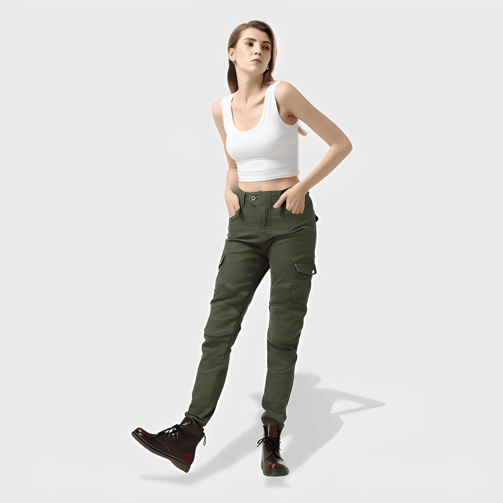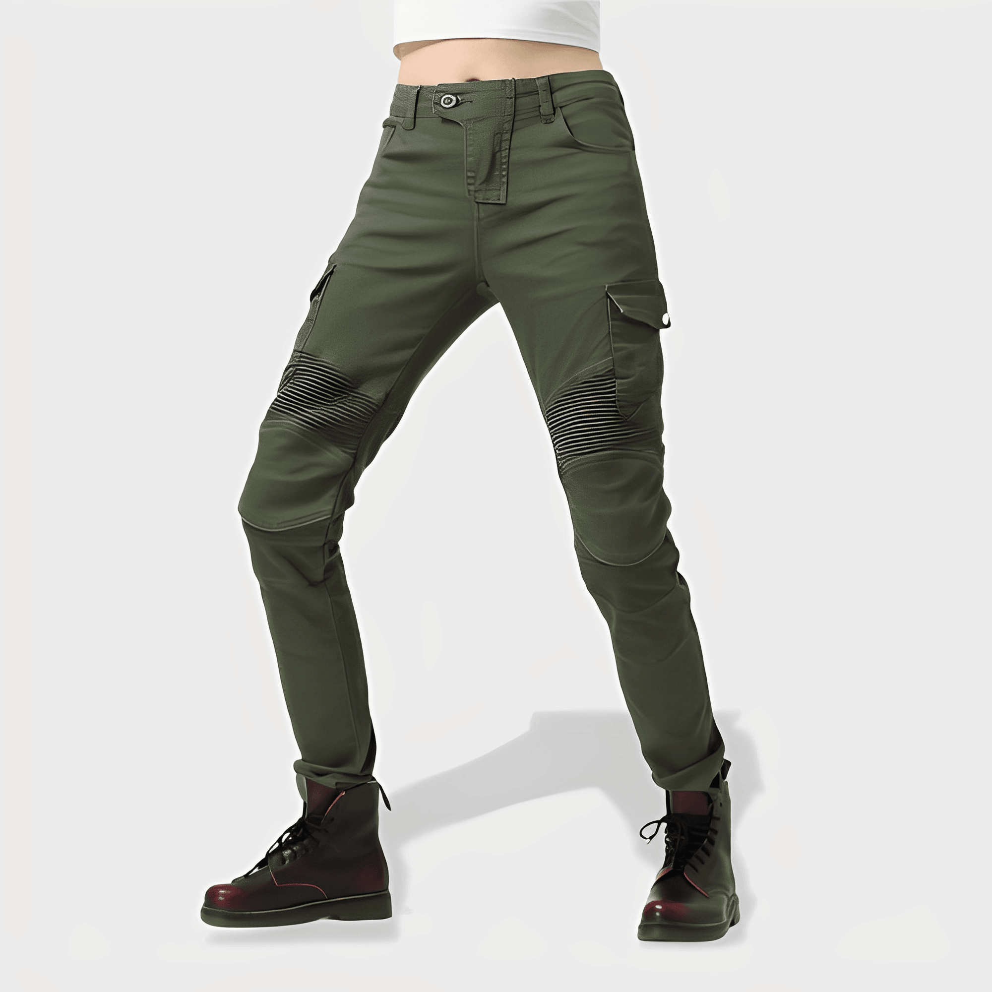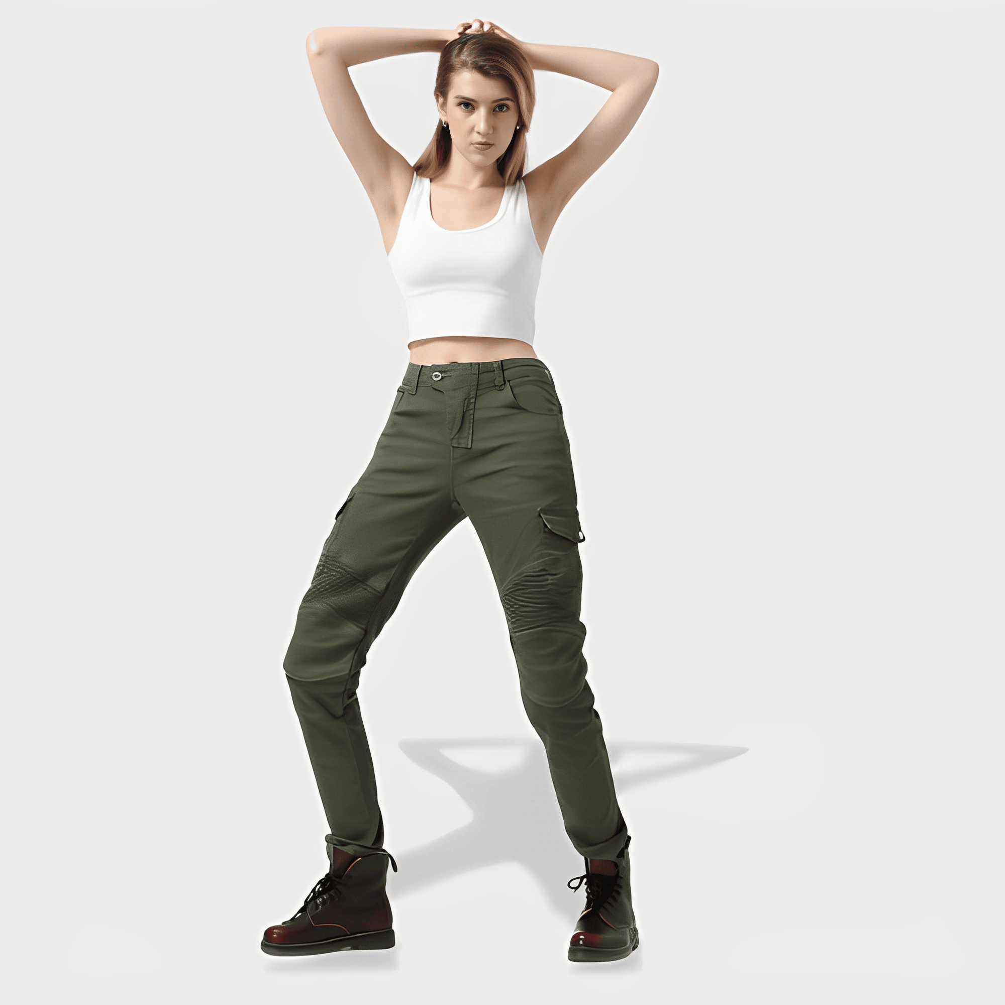 Jean Moto Femme Vert ArmorX™ : Élégance et Protection Maximale