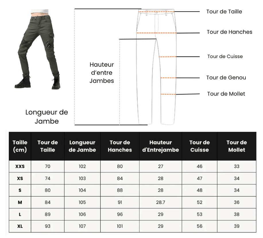 - Conseil : Si vos mesures se situent entre deux tailles, choisissez toujours la taille supérieure.