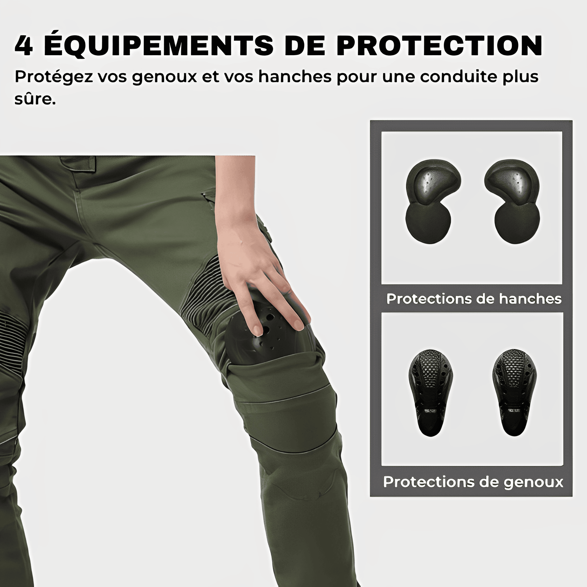 Équipé de 2 protections CE détachables aux hanches et de 2 protections CE amovibles aux genoux, il garantit une sécurité personnalisée et un confort optimal pour chaque motarde.