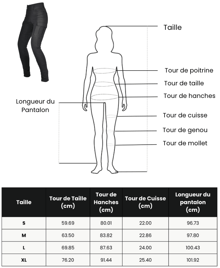 Le pantalon moto Femme offre une protection optimale contre les chutes et les impacts grâce à ses renforts intégrés et son tissu durable. Vous roulez en toute confiance, sachant que vous êtes protégée en cas d'incident.